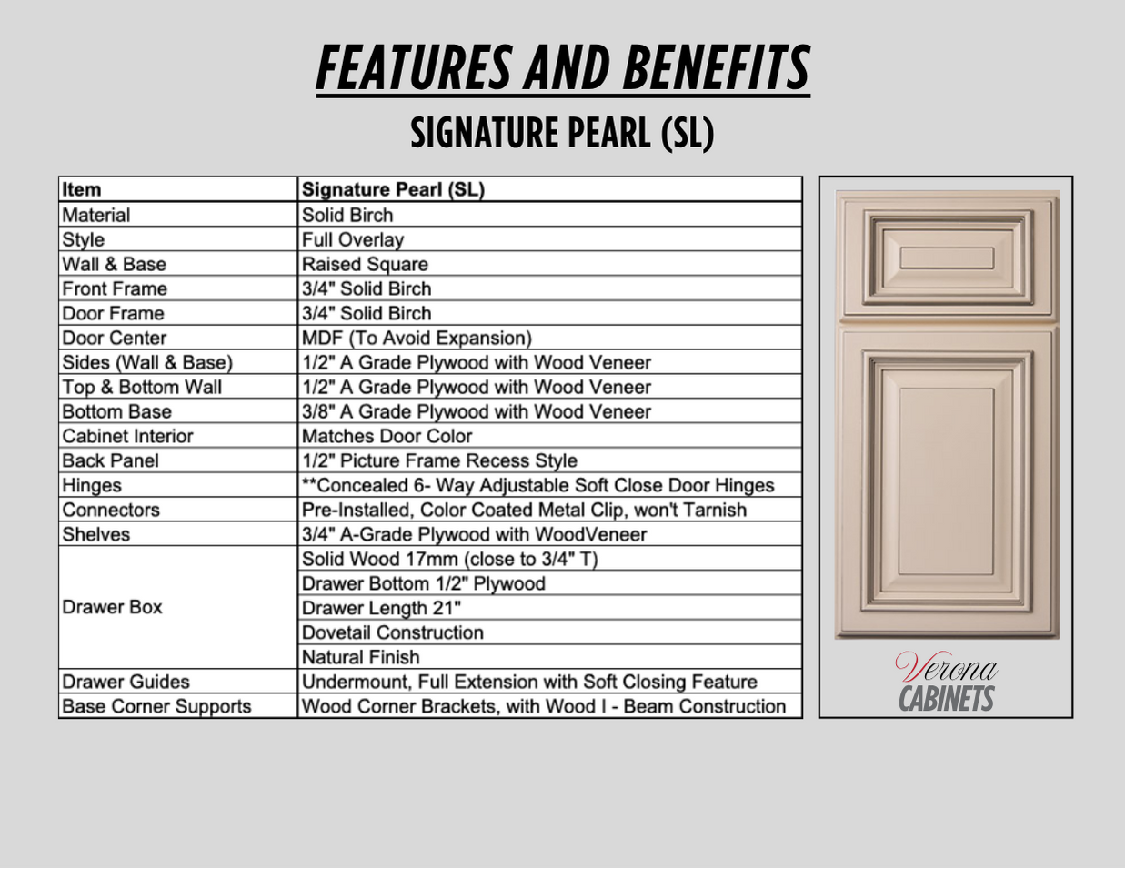 - Solid wood drawer box with dovetail construction