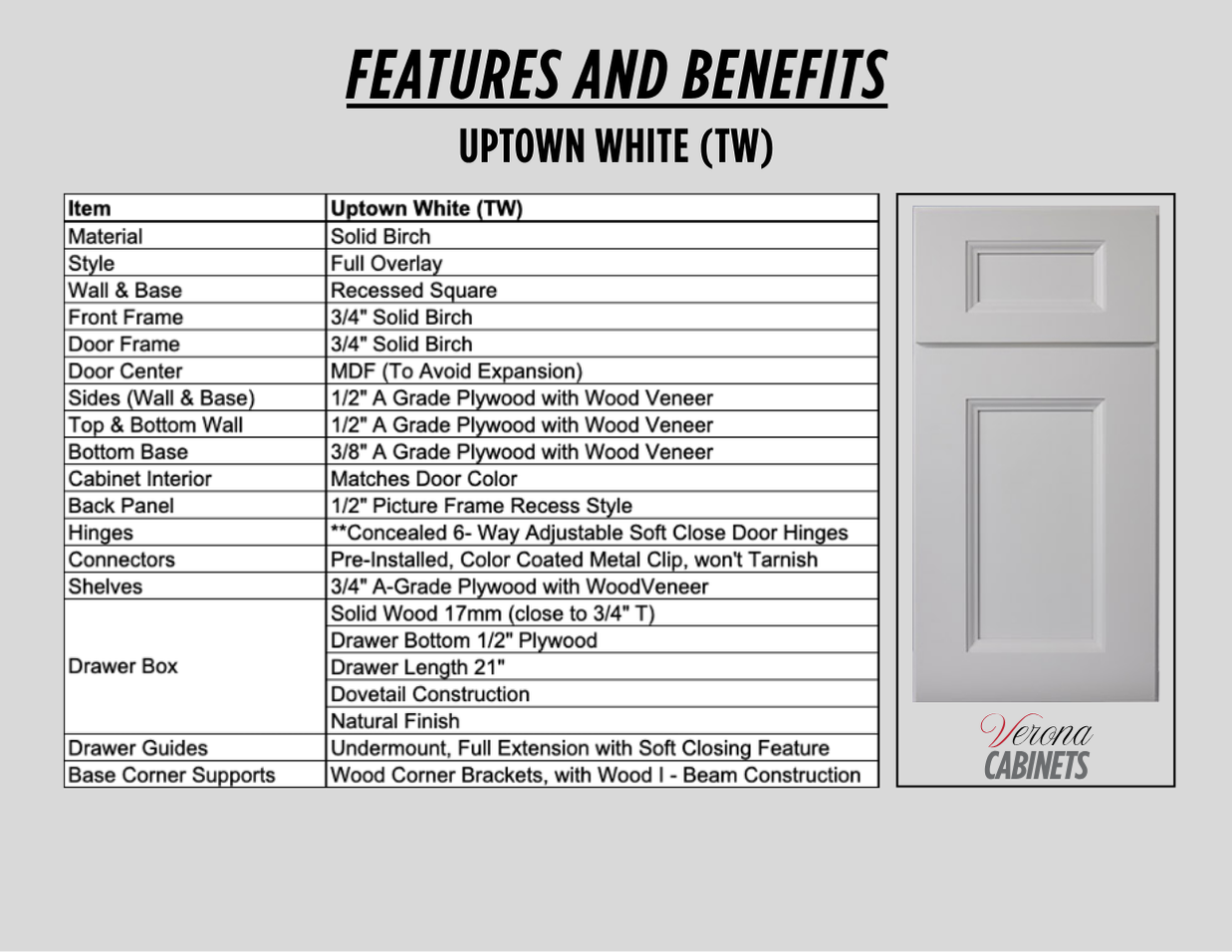 These cabinets are built with precision, offering a seamless full-overlay design for a polished finish. The solid wood frame provides long-lasting durability, while the reinforced cabinet joints ensure structural integrity even with frequent use.