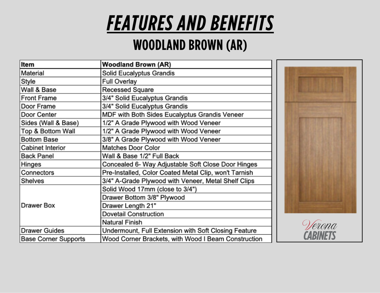 For a more inviting and modern kitchen ambiance, the Woodland Brown cabinet is an ideal choice. Its clean lines and warm brown tone create a comforting and contemporary atmosphere.