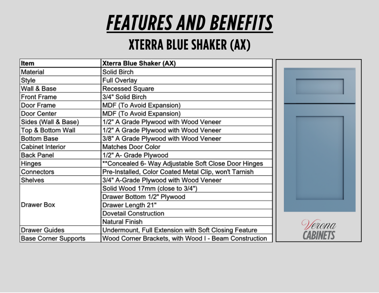 The Xterra Blue Shaker features a clean, simple design that provides a bold contemporary update to any kitchen or bathroom. Its vibrant color makes it a popular choice in both modern and traditional homes. The shaker style insures that it will never go out of style.